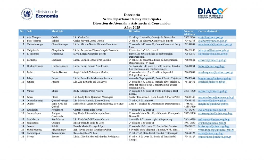 Centro de Atención de Quejas: 6av. 0-35 Zona 4 C.C. Plaza Zona 4 Área de Restaurantes 3er. Nivel Tel: 2501-9600